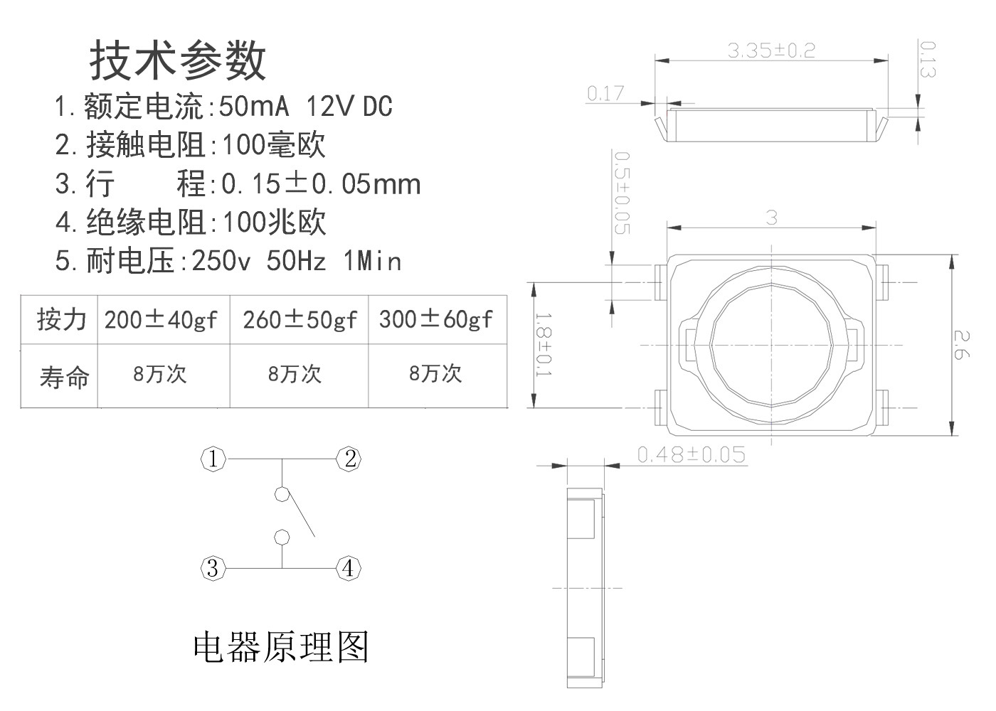 3.行程:0.15土0.05mm