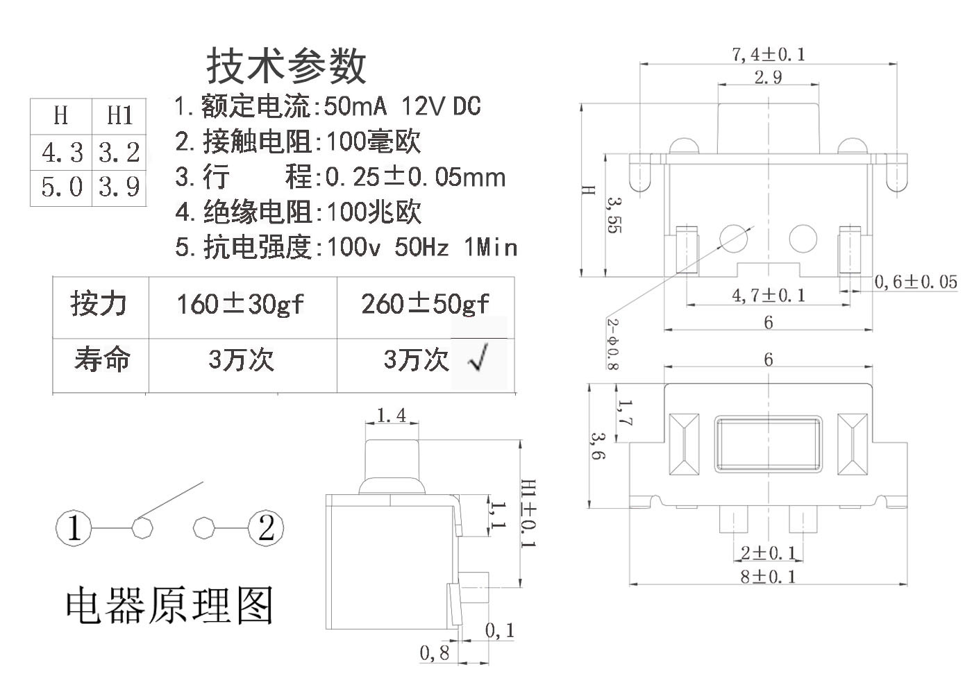2.接触电阻:100毫欧