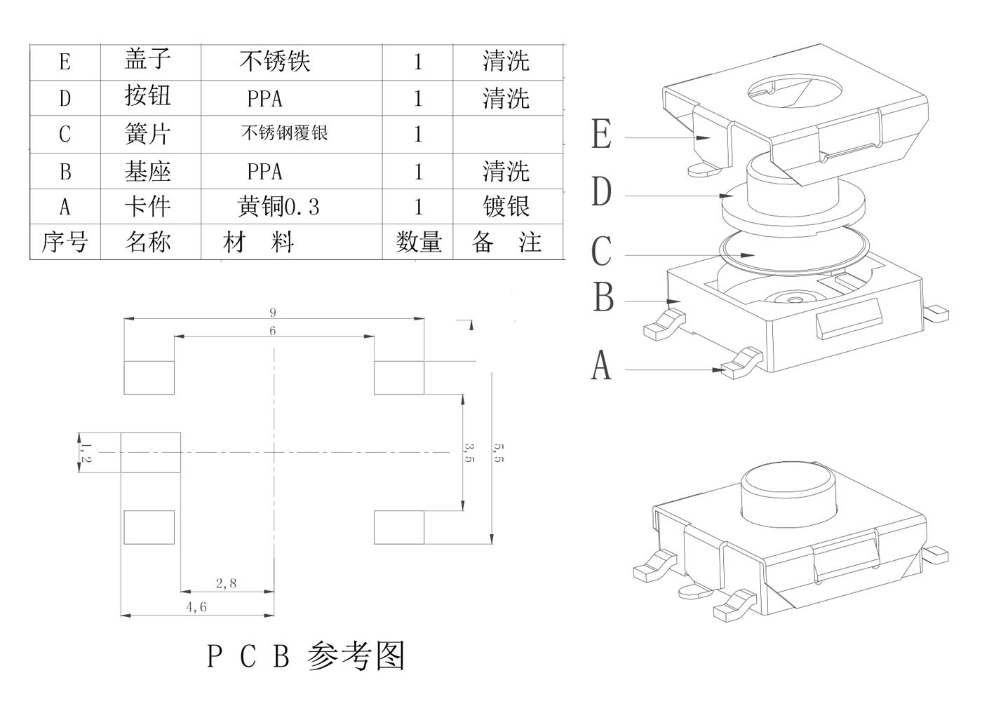 特点:可用按入式直接安装到线路板
