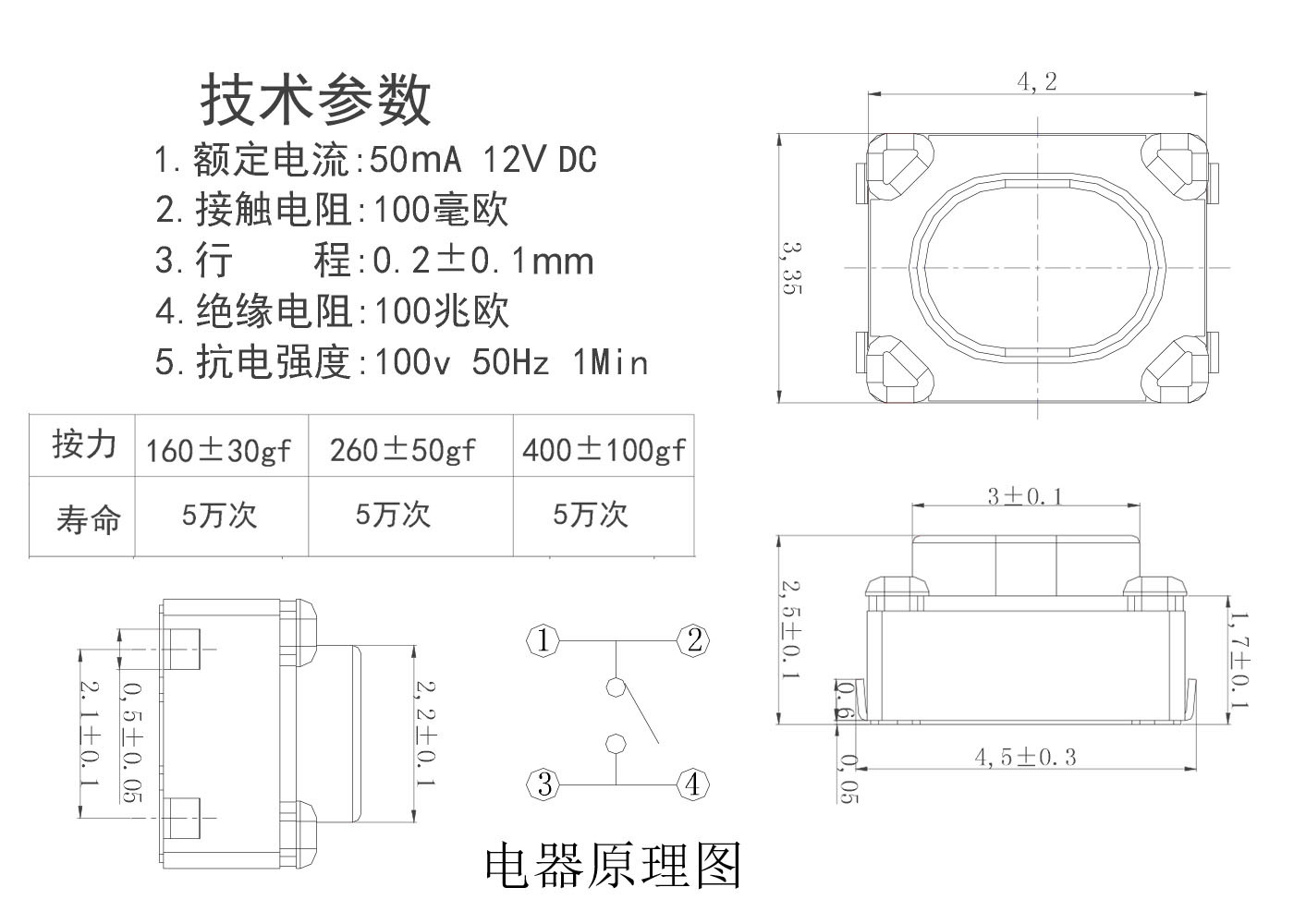 3.行程:0.2±0.1 mm