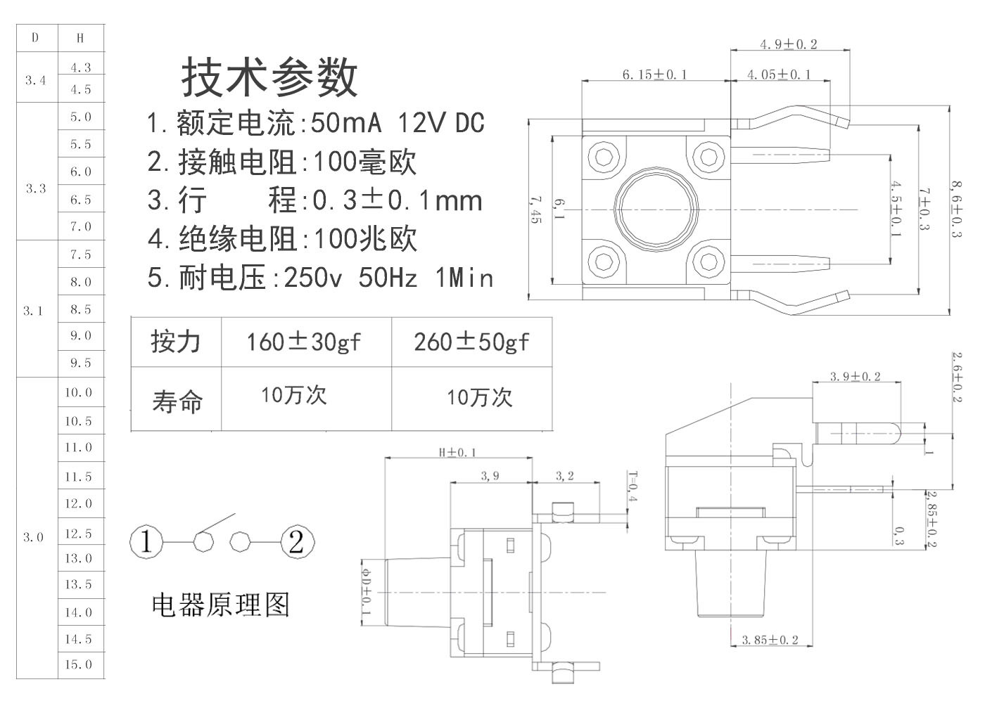 3.行程:0.3±0.1mm