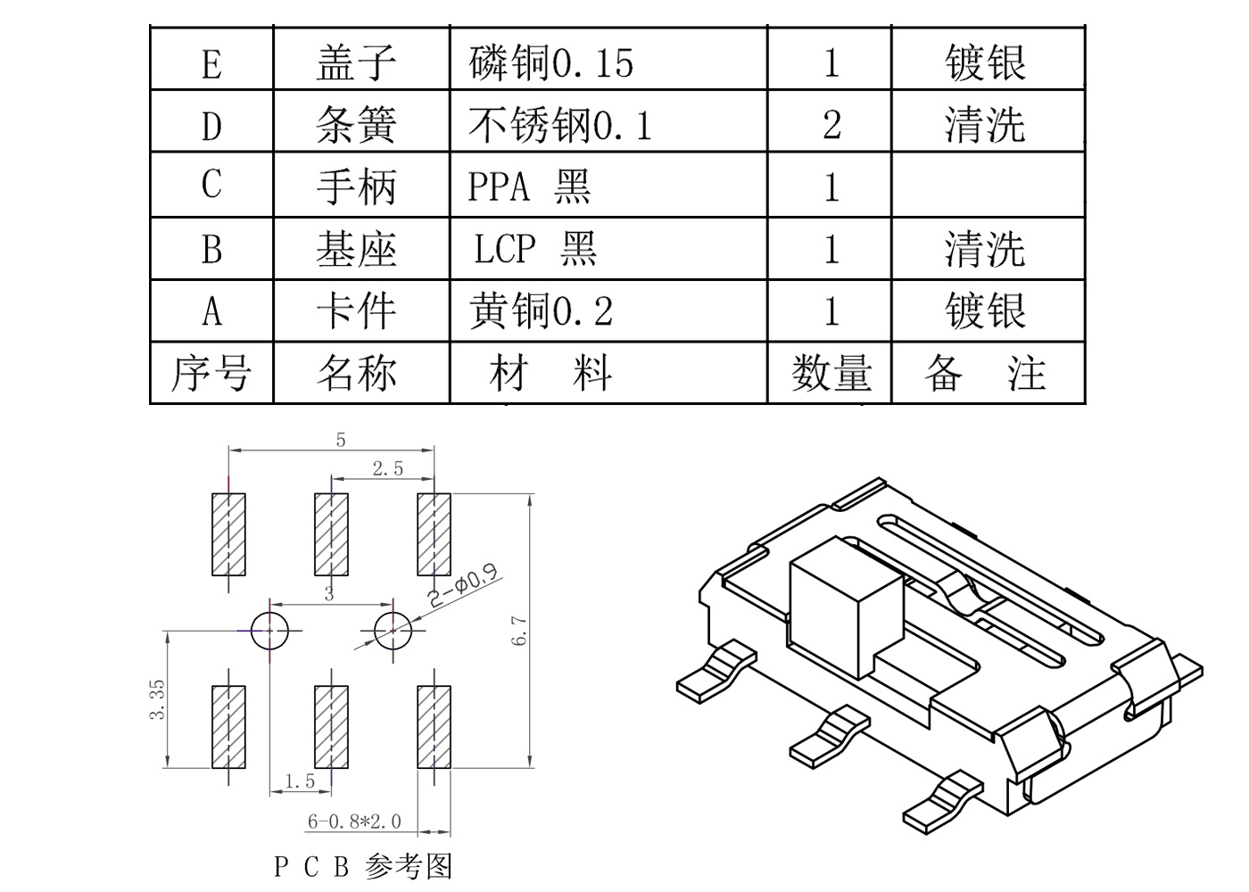 特点:滑块动作灵活,性能稳定可靠。开关采用16mm宽编带包装