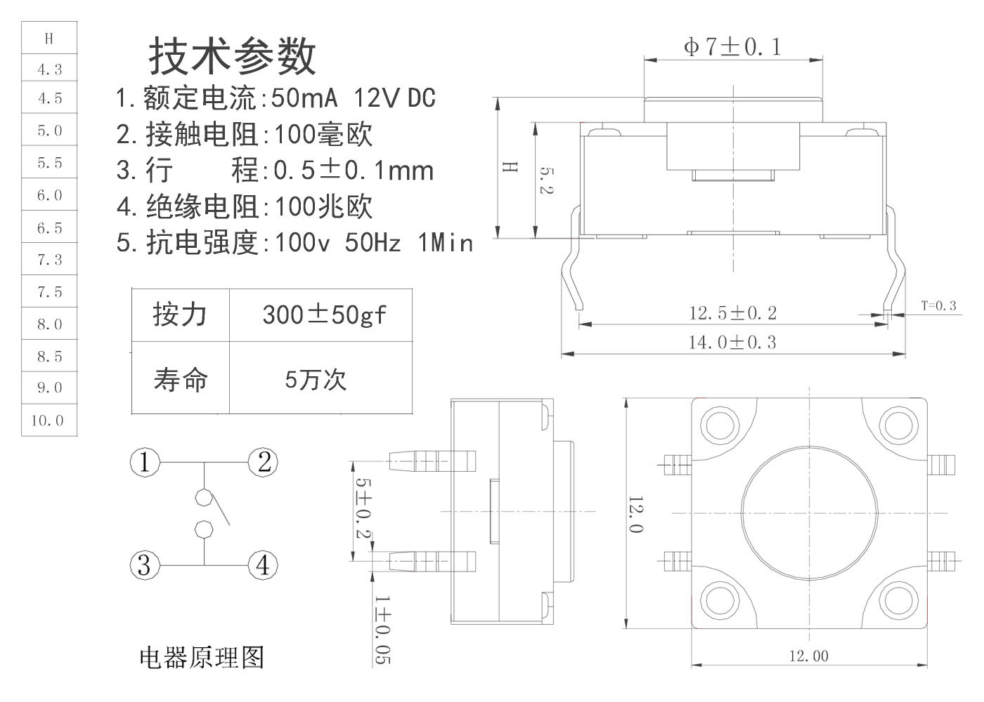 1.额定电流:50mA 12V DC