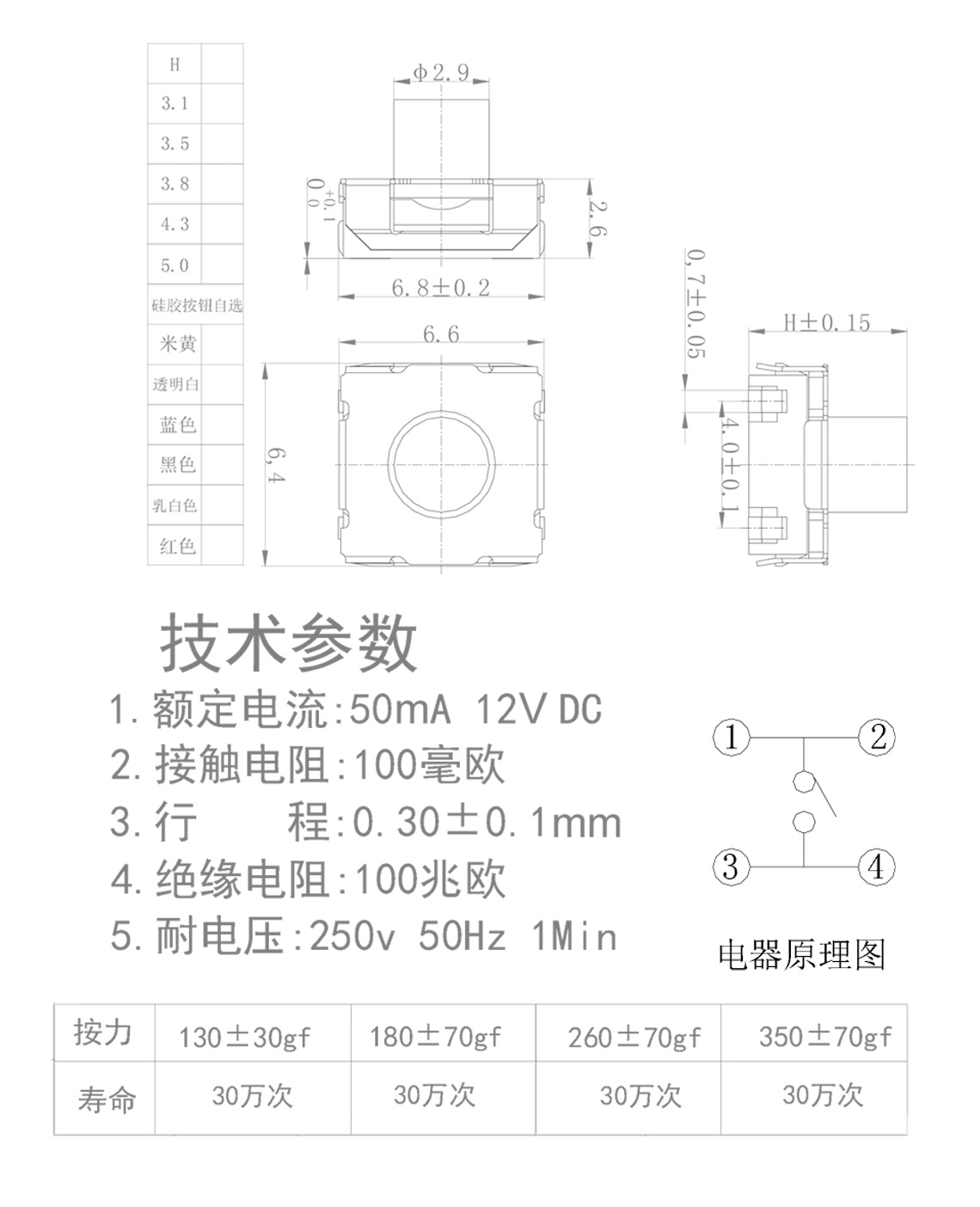 3.行程 :0.30±0.1mm