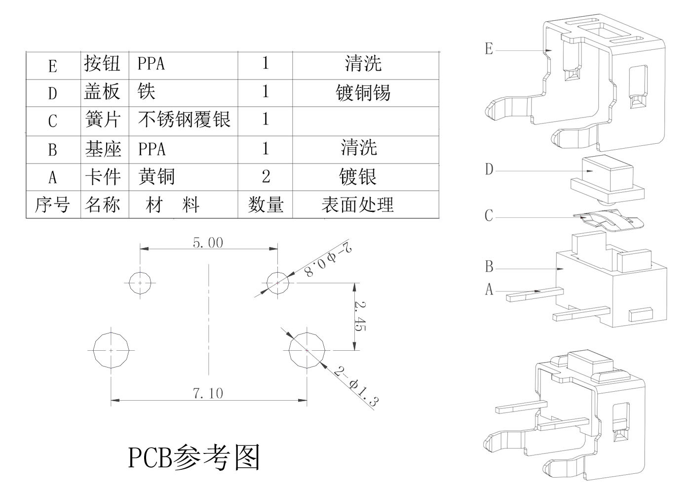 特点:适应波峰焊接。可在线路板上用按入式直接安装。
