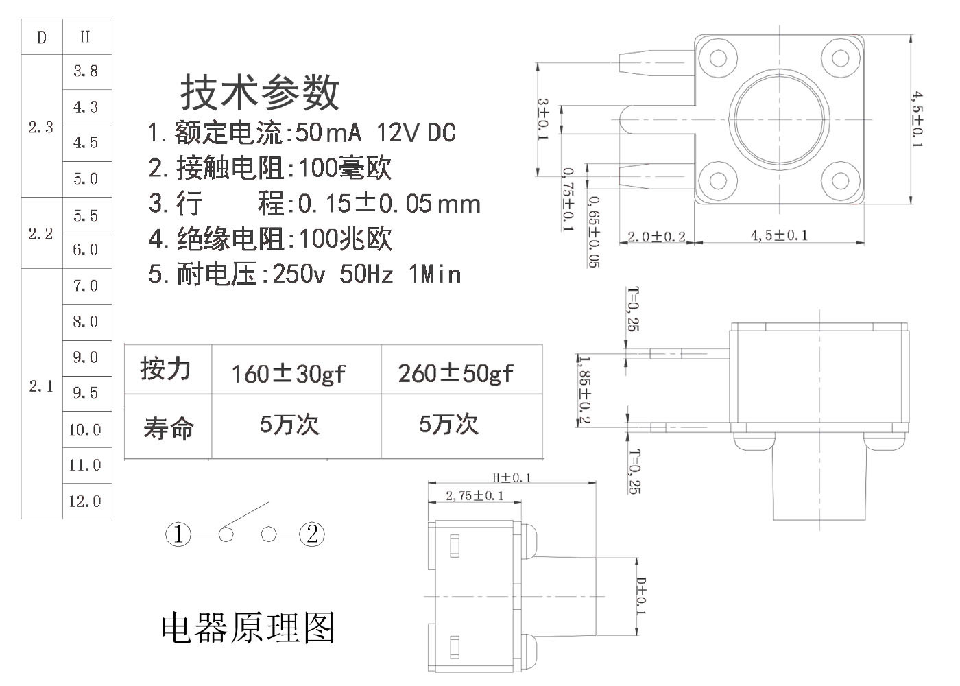 3.行程:0.15±0.05 mm