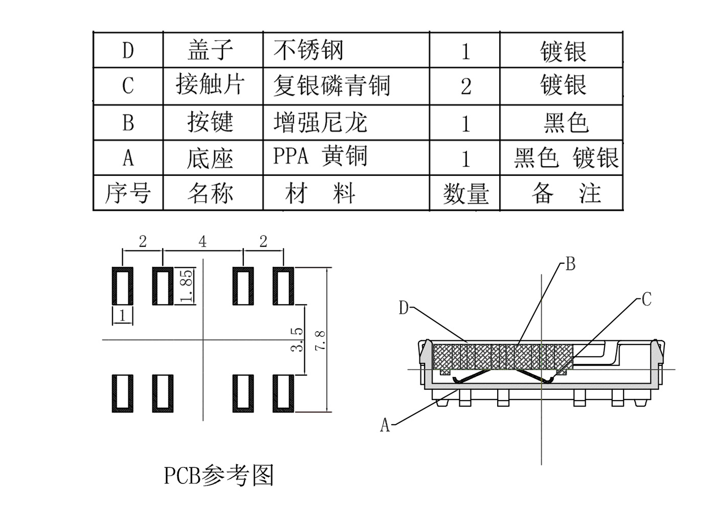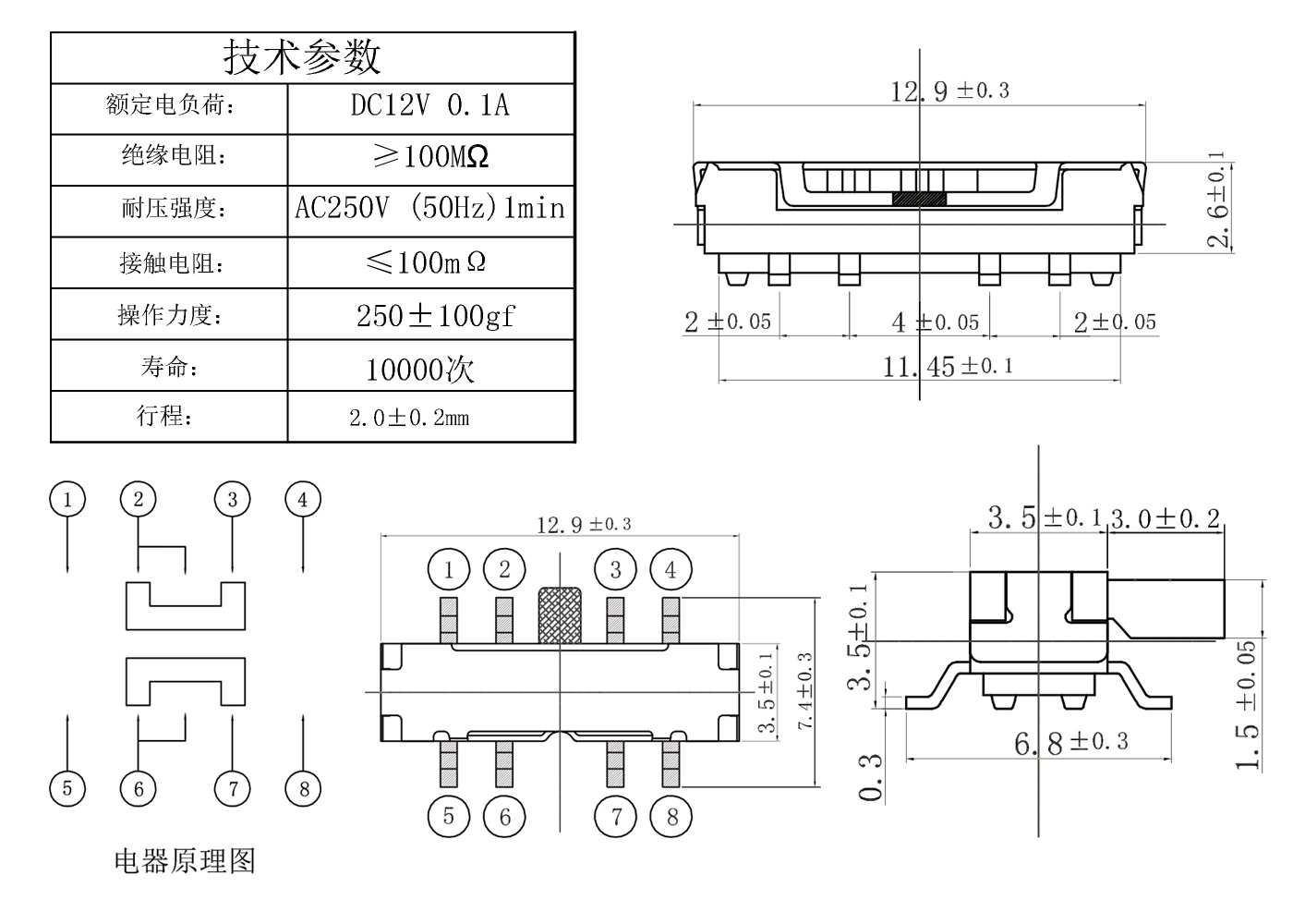 特点:滑块动作灵活,性能稳定可靠。开关采用16mm宽编带包装