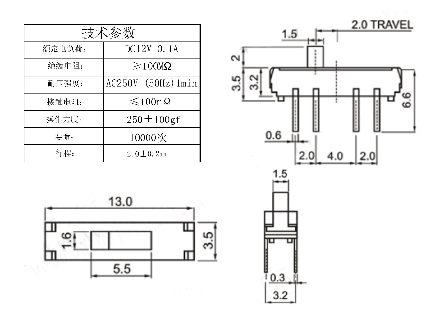 行程:2.0土0.2mm